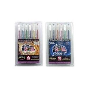 The Sakura Gelly Roll Stardust Bold Meteor Pens 6-Pack, Silver/Marine/Copper/Pink/Green/Blue were my absolute favorite type of gel pen. I remember when I got my pack when I was still in elementary school and how excited I had been because I had been currently obsessed with gel pens. I loved the fact that the Sakura Gelly Roll Stardust Bold Meteor Pens were extra sparkly -- meaning that you could literally see tons of little silver sparkles in the ink on your paper. Sadly, sometimes, the little silver sparkles would run off or end up on your hands, but the Sakura Gelly Roll Stardust Bold Meteor Pens were very exciting to me nonetheless. In addition, I liked all the colors that the Sakura Gelly Roll Stardust Bold Meteor Pens 6-Pack came in - Silver, Marine, Copper, Pink, Green, Blue. My favorites in particular were the green, pink and blue Sakura Gelly Roll Stardust Bold Meteor Pens. Overall, I would highly recommend the Sakura Gelly Roll Stardust Bold Meteor Pens 6-Pack, Silver/Marine/Copper/Pink/Green/Blue.